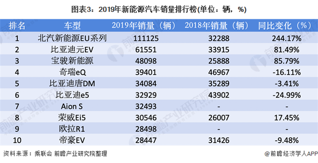 对比2018年全年销量排行榜,2019年有更多的精品车型占据了前列,部分低端车型被同级别更优秀的产品所取代。2019年,新能源市场经历了补贴的巨大退坡,产品自身的实力越来越成为影响消费者决策的关键。